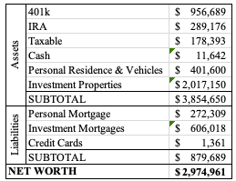 Our net worth increased by $21k from last month. Our credit card balances are low, and then our cash balance is higher than usual because we used to just put any extra cash towards mortgages, but right now we’re trying to pay off that mortgage we have with a partner and rethink our approach (do we want to save for another down payment.. type question).