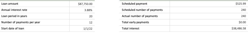 The original loan terms were a 20 year at 3.875%.