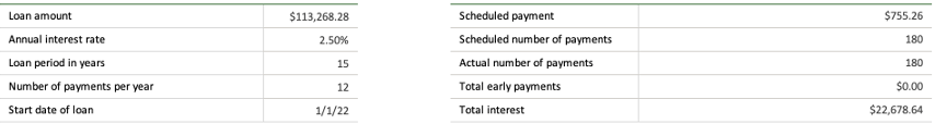 The original loan terms were a 15 year at 3.25%.