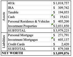 In these projections, we’ll receive $135,000 cash in hand. With that, we’ll pay off the higher loan in Kentucky, which has a balance of about $81k. That mortgage has a monthly payment of $615.34. These three loans have increased their monthly mortgage payments by $535.14 in total. Since we’ve eliminated a monthly mortgage with the cash from these new loans, our total monthly cash flow actually has a net increase of $80.20. In addition to this net positive cash flow, we also have over $53k in cash in our account.