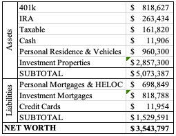 We have a busy October planned. I hope we’ll finish the projects at the new house and be close to closing the chapter of our last house. Our investments have declined significantly (almost $91k!) from last month. Our cash is higher than usual because of the cycle timing for this update compared to the bill due dates. And finally, the credit cards are higher than usual, and they’re higher than last month, but that’s because we’re purposely carrying a balance on a 0% interest card. So while our overall net worth has decreased over $33k since last month, the stock market issues have been offset by paying down mortgages and increased property values.