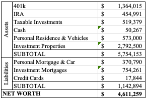 Well, we bought a new car, paid off a credit card with a $6,500 balance since the 0% interest expired, and added a hot tub purchase to a different credit card, so there was some big swings in our net worth this month. With the hot tub added, our credit card balance went up $6k. Our cash only went down about $600, which was interesting to see. Our liabilities increased with the car purchase, but with our investments, our net worth increased by over $30k.