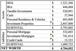 Two months ago, my job asked for my goals. It’s a specific document that I was to fill out. Someone else had mentioned their net worth goal, and our next big step would be $5 million net worth. Well, the market has been in shambles, and our net worth plummeted from where it was. I thought it prudent to not make such a goal when our net worth is completely reliant on the market actions right now (i.e., we’re not selling/purchasing or making any big moves that would drastically change our net worth outside of the market actions). We’re finally on the upswing and now at the highest net worth we’ve been, so that’s encouraging after those big dips recently.